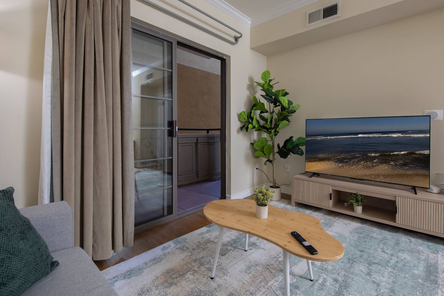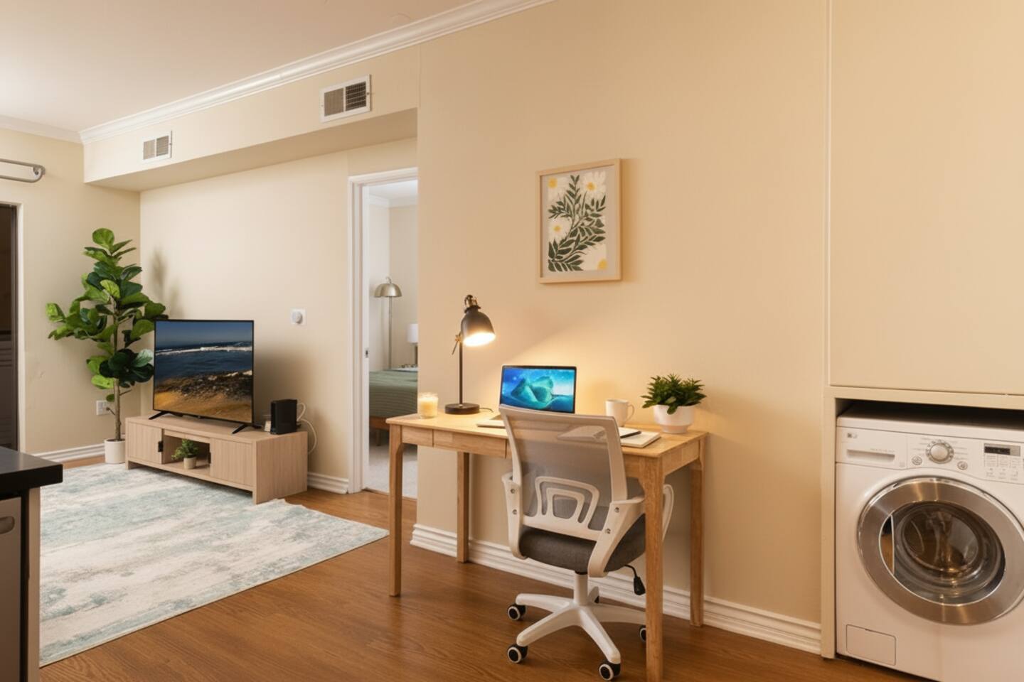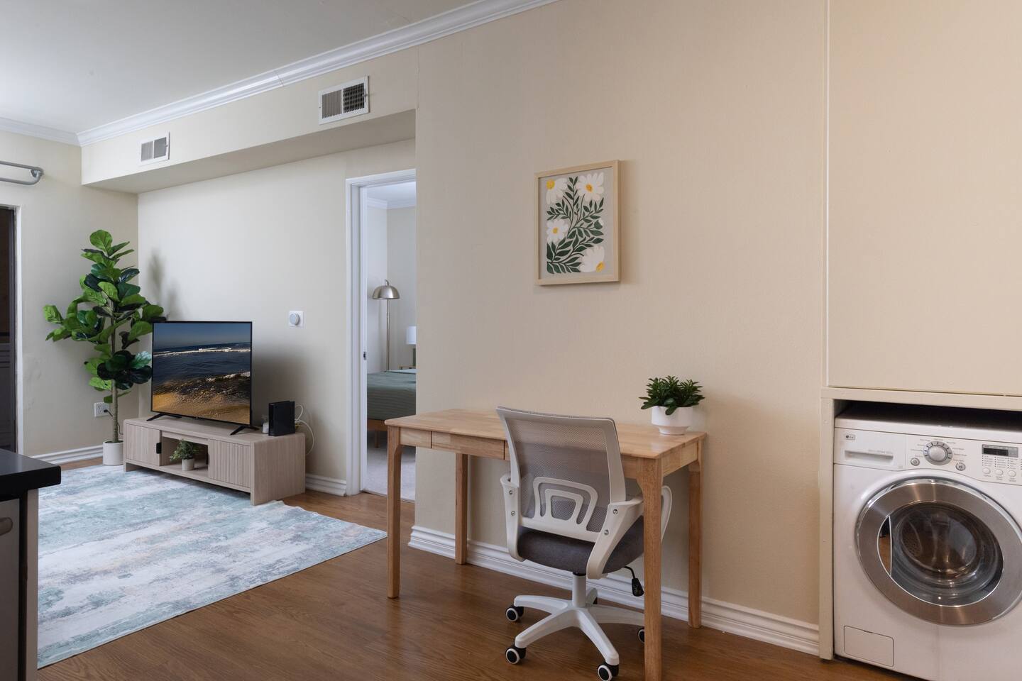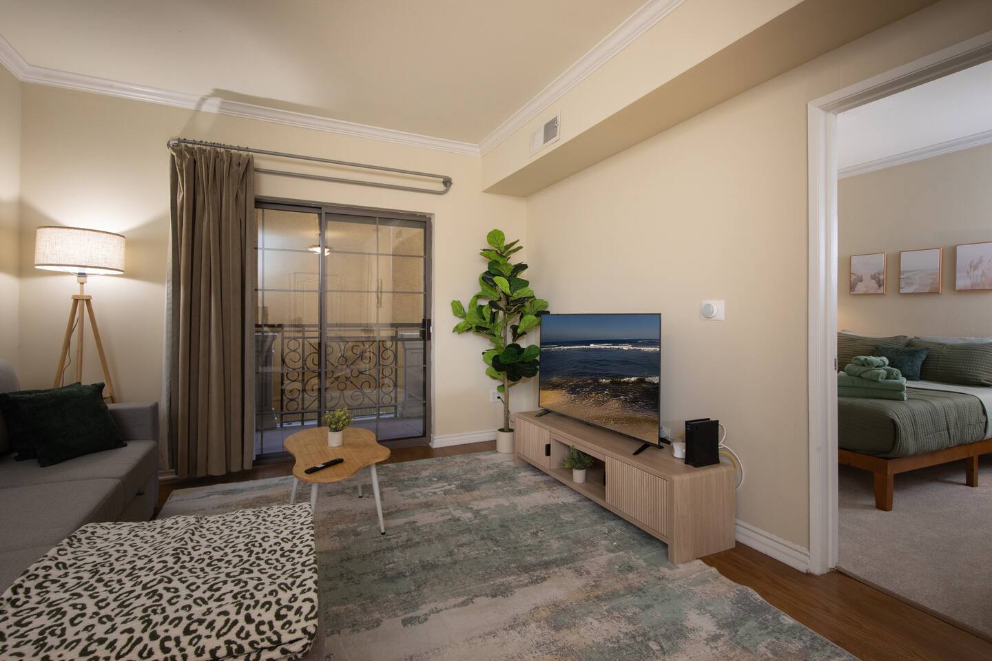 Welcome to your cozy Santa Monica stay! Bright, spacious, and modern one bed/one bath in the heart of downtown Santa Monica. Your home away from home is only a short and beautiful walk to the Pier, Beach, Third Street Promenade, and Santa Monica Place. Whether you're in town for work or vacation, this space is perfect! Enjoy a private balcony, comfy queen bed with hotel-style linens, fast Wi‑Fi, equipped kitchen, full bath, easy self check‑in, and a parking garage for your convenience.