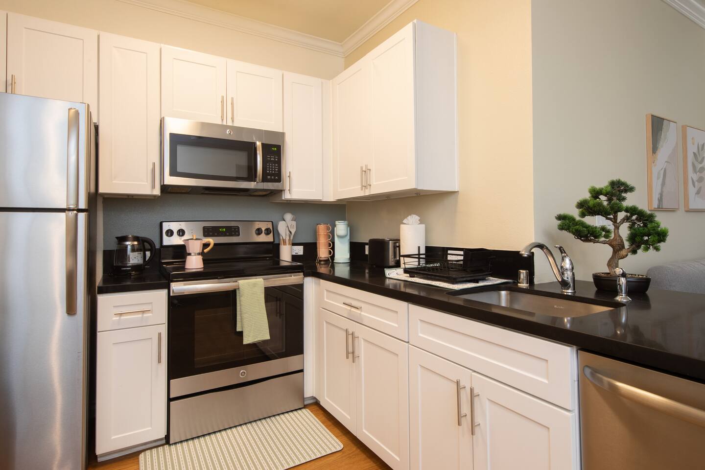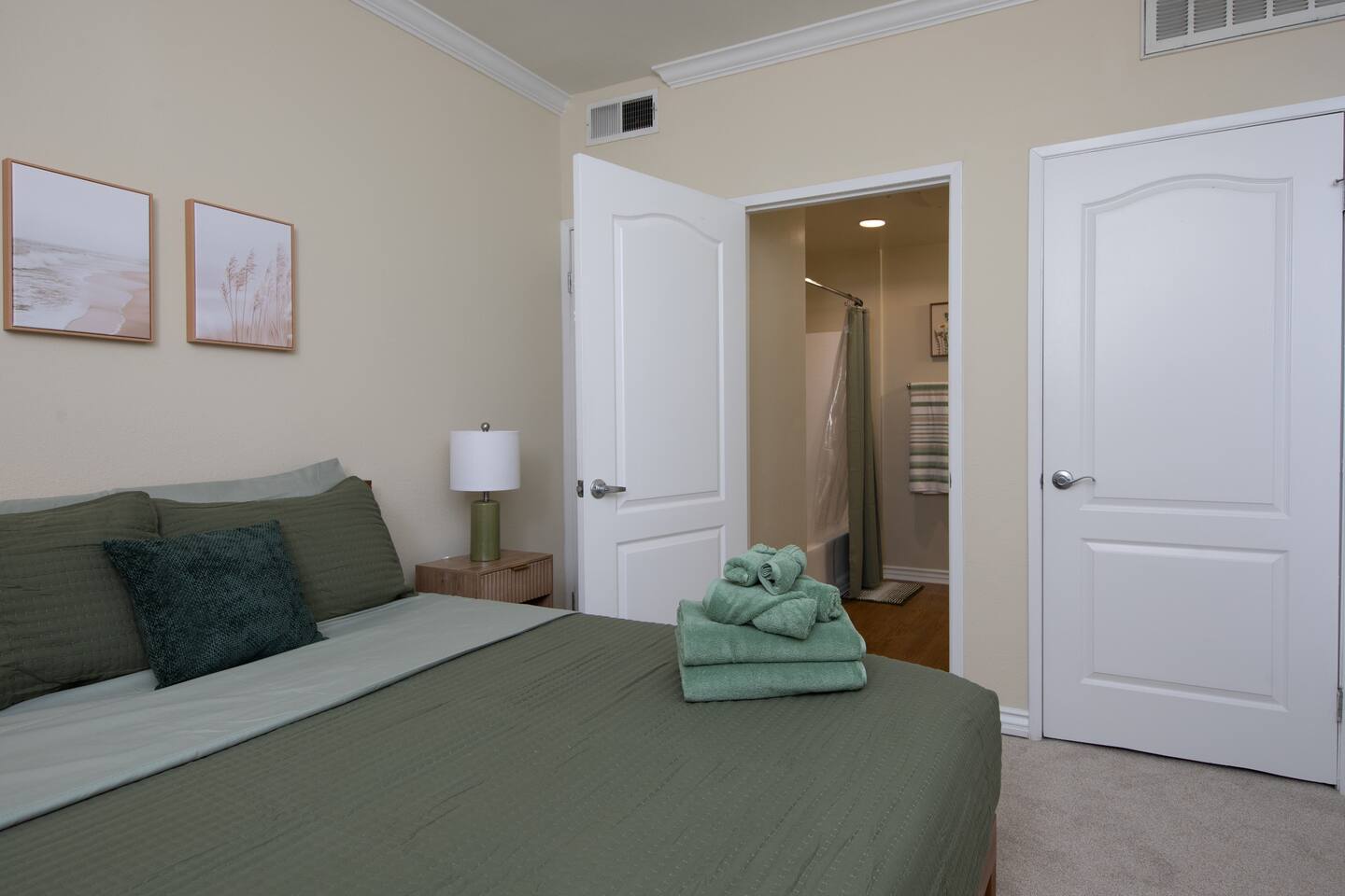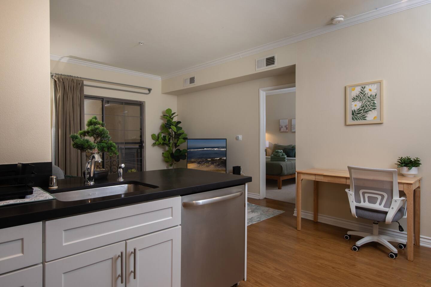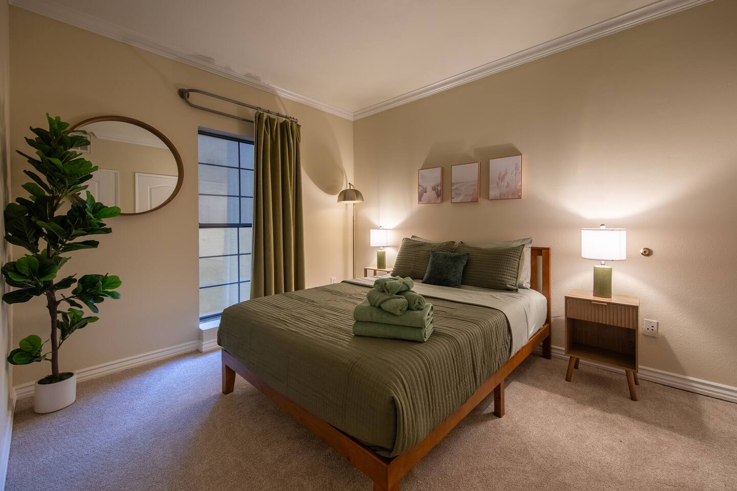 Welcome to your cozy Santa Monica stay! Bright, spacious, and modern one bed/one bath in the heart of downtown Santa Monica. Your home away from home is only a short and beautiful walk to the Pier, Beach, Third Street Promenade, and Santa Monica Place. Whether you're in town for work or vacation, this space is perfect! Enjoy a private balcony, comfy queen bed with hotel-style linens, fast Wi‑Fi, equipped kitchen, full bath, easy self check‑in, and a parking garage for your convenience.