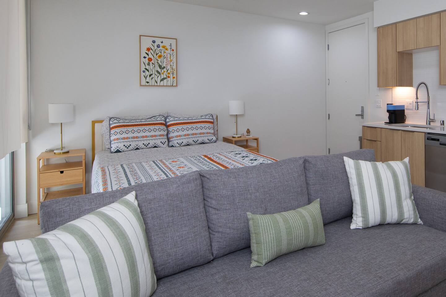 This space is crafted for your ultimate comfort and relaxation π§ββοΈ, with stylish furnishings and thoughtful amenities throughout. Perfect for both short and long-term stays! π‘β¨ Our Cozy Studio Includes: β‘ High-Speed WiFi ποΈ Queen Size Bed πΊ Smart TV with Roku πΌ Work Desk π§΄ Fully Stocked Bathroom π³ Full Kitchen with Cookware βοΈπ₯ Air Conditioning & Heating π½ Farmers Market on Wednesdays & Saturdays πΆ Walking Distance to all that Santa Monica has to offer! Enjoy a relaxing stay in the heart of Santa Monica! π