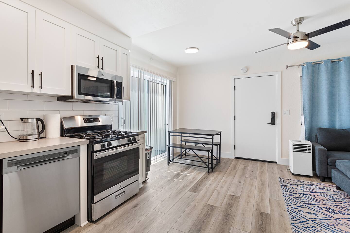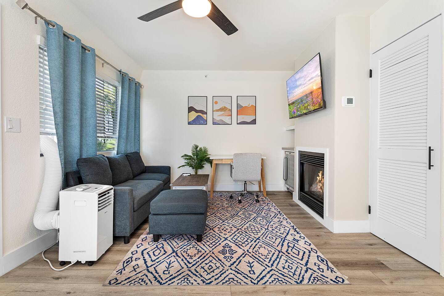 *Interior Features: **Spacious Living: Enjoy a generously sized living room that's flooded with natural light, creating a warm and welcoming atmosphere. The chic, modern furnishings are not only stylish but also offer all the comforts of home. **Gourmet Kitchen: Equipped with appliances and ample counter space, our kitchen is perfect for preparing and enjoying meals, whether it's a quick breakfast before exploring the city or a leisurely dinner. **Comfortable Sleeping: The bedroom is a serene haven, featuring a plush queen-sized bed and premium linens to ensure a restful night's sleep. *Outdoor Features: **Expansive Patio: One of the apartment's highlights is its large private patio. It's an ideal spot for morning coffee, yoga at sunrise, or evening cocktails as you soak in the ocean breeze.