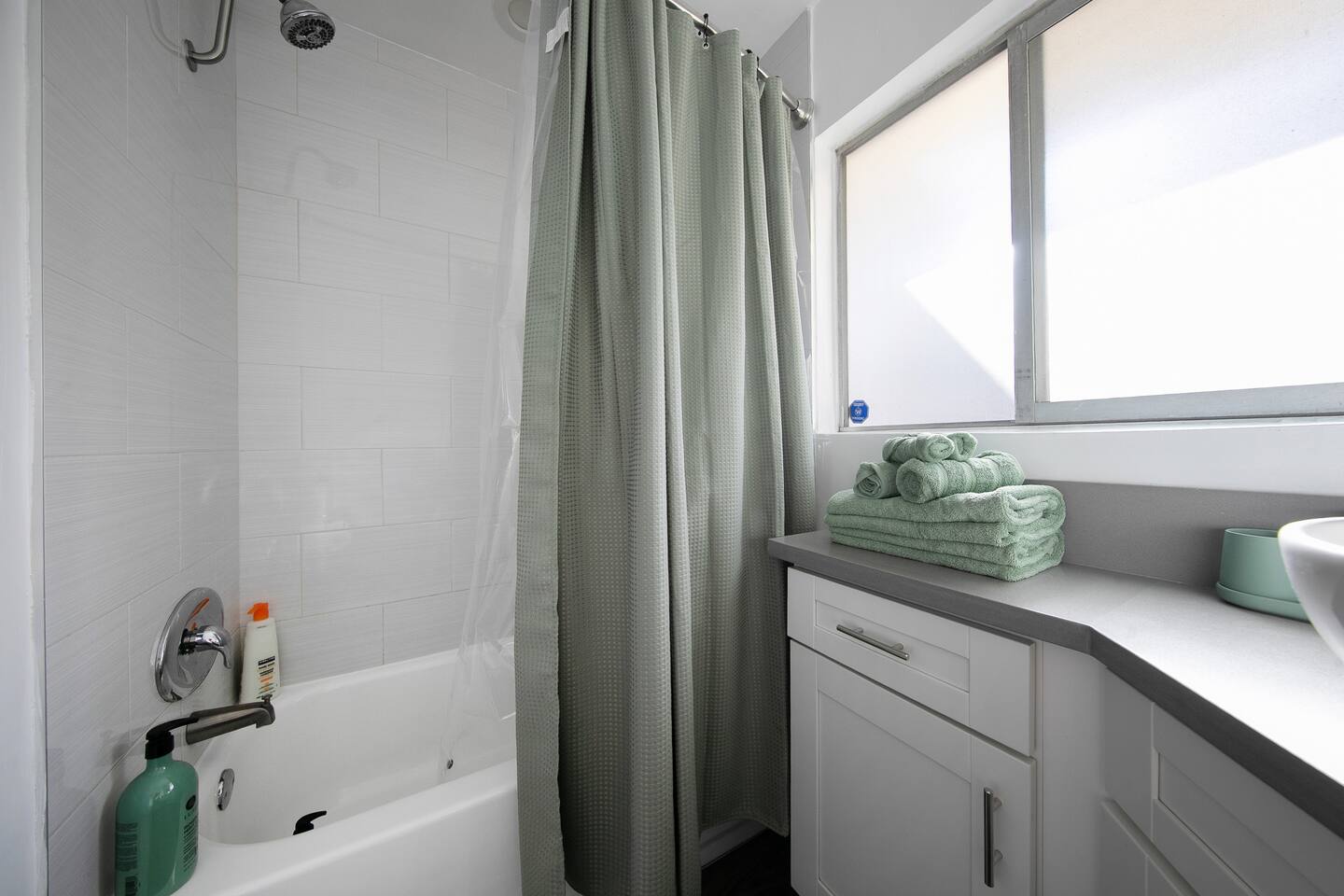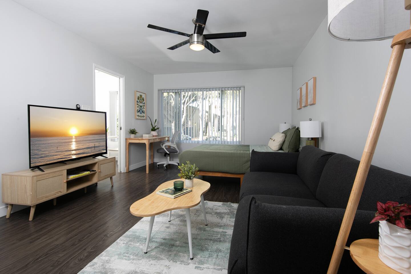 ✨ Features you’ll love: • Spacious living area with cozy seating and natural light ☀️ • Fully equipped kitchen: perfect for cooking or enjoying takeout from nearby favorites 🍴 • Peaceful bedroom with a plush queen bed for restful nights 💤 • Clean, modern bathroom stocked with fresh towels and essentials 🧴 • High-speed WiFi + Smart TV for streaming your favorite shows 📺 • Self-Check In for a private make yourself at home feel. • Comfortable work station to work from home.