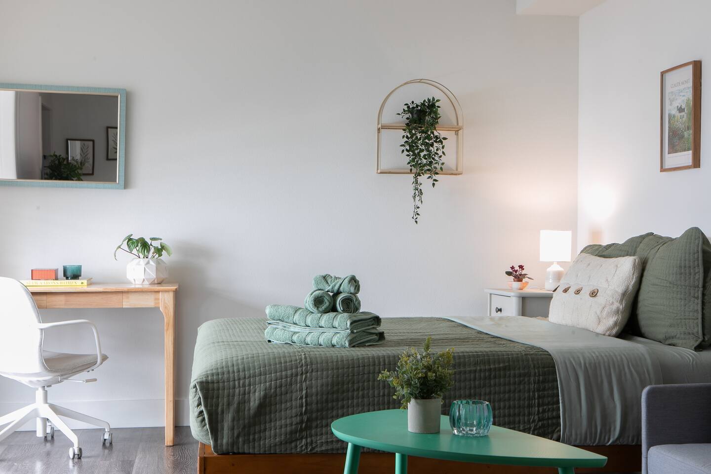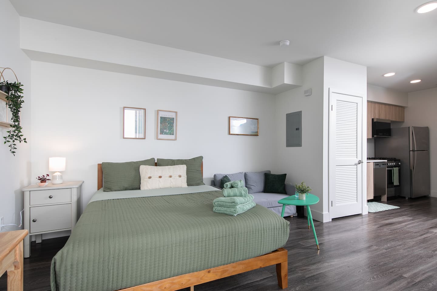Cozy Studio in the Heart of Santa Monica Stay in a bright, comfy studio, perfectly located for beach days, shopping, and dining adventures. 🏖️✨ This cozy space features a comfy living/sleeping area, a practical kitchen equipped with the best appliances for quick bites or home-cooked meals, and a clean private bathroom for a relaxing reset. Enjoy the convenience of in-unit washer and dryer and a dedicated parking space in the garage (a huge plus in Santa Monica).