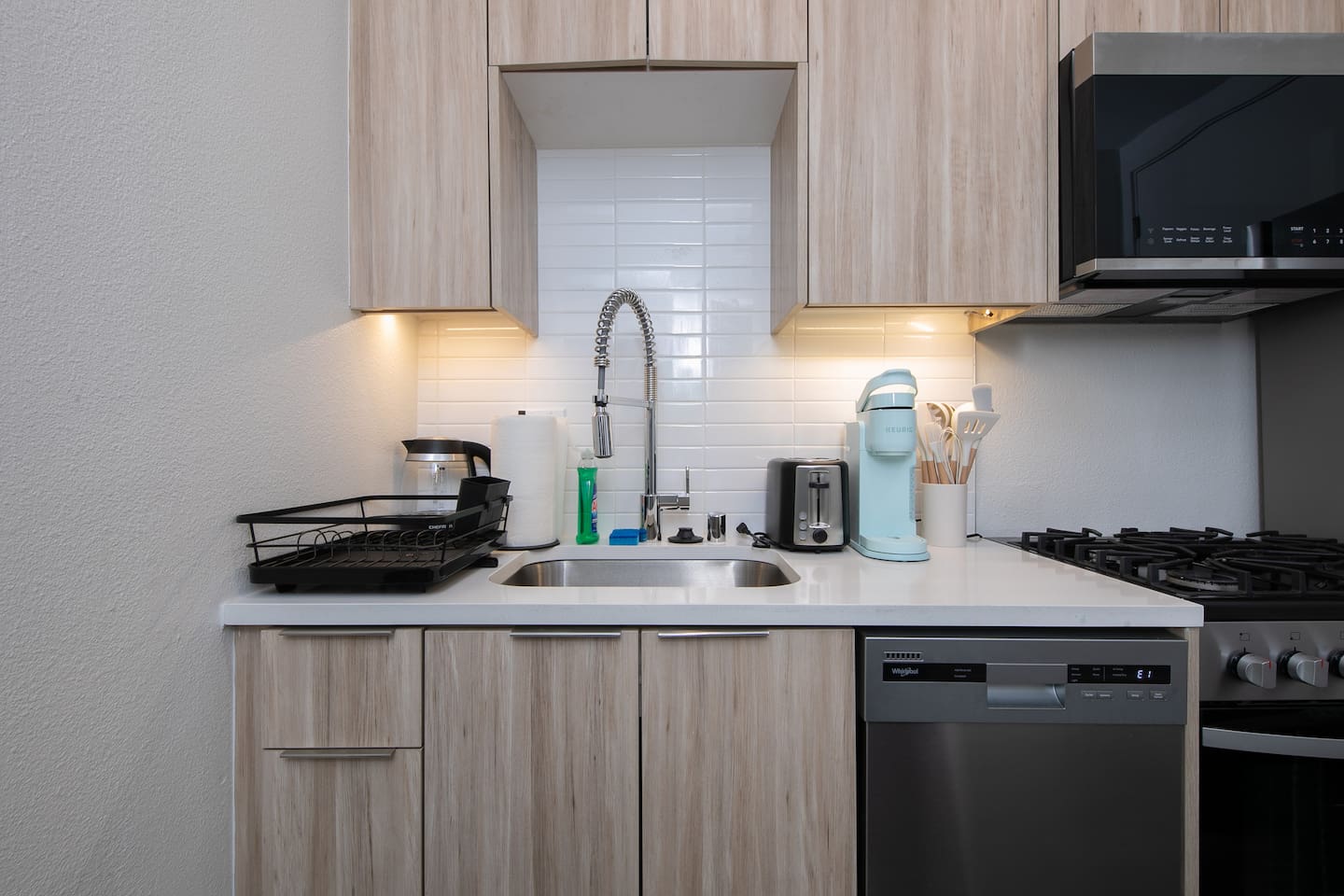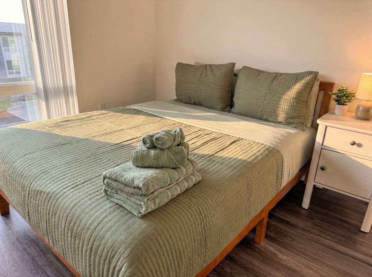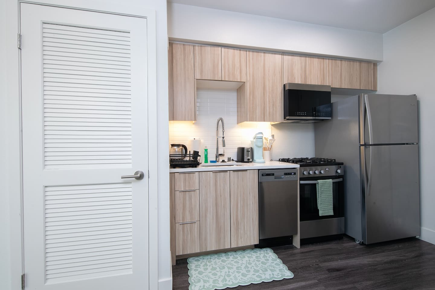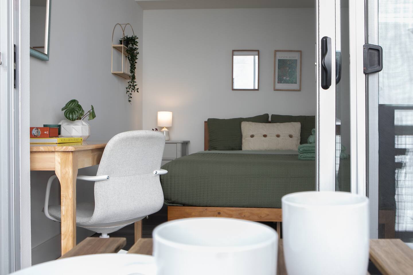 This cozy studio is designed for comfort and convenience, with a warm, inviting feel from the moment you walk in. A thoughtfully arranged living/sleeping area opens onto a spacious balcony, giving you extra room to relax with your morning coffee or unwind in the evening. The new kitchen appliances make cooking or heating up meals easy and enjoyable, while the in-unit washer and dryer mean you can pack light and stay as long as you like. It’s a stylish space that feels like your own little Santa Monica retreat. 🌴✨
