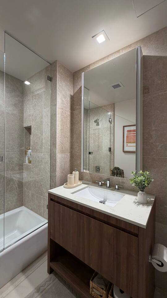 Guests can enjoy a full access to those building amenities: - Bi-level wellness-focused Residence Club - Spa with a Himalayan Salt sauna and steam room, heated loungers, massage and meditation rooms - Comprehensive fitness programming including yoga, and group classes - 24-hour fitness and strength center with Woodway and Peloton cardio equipment - Library and co-working cafe - Locally curated artwork