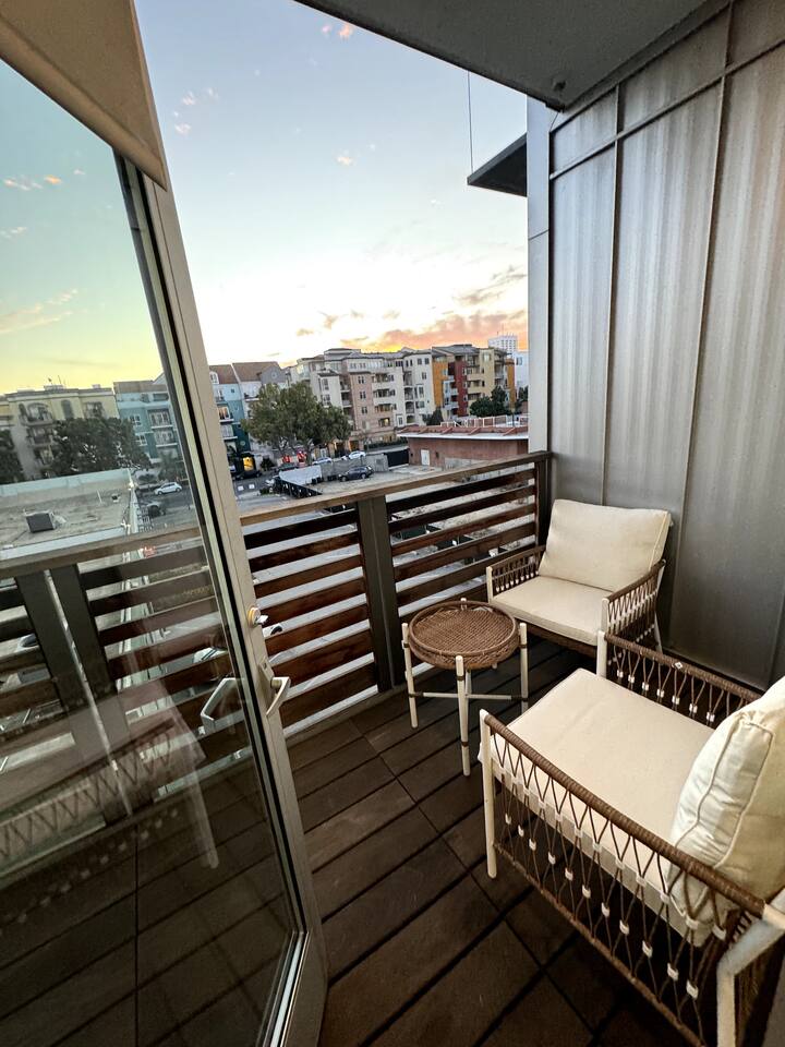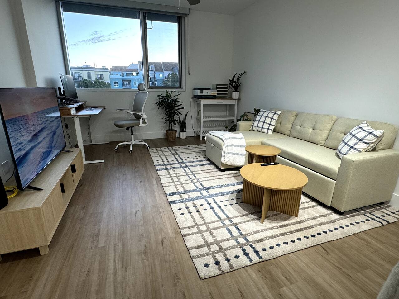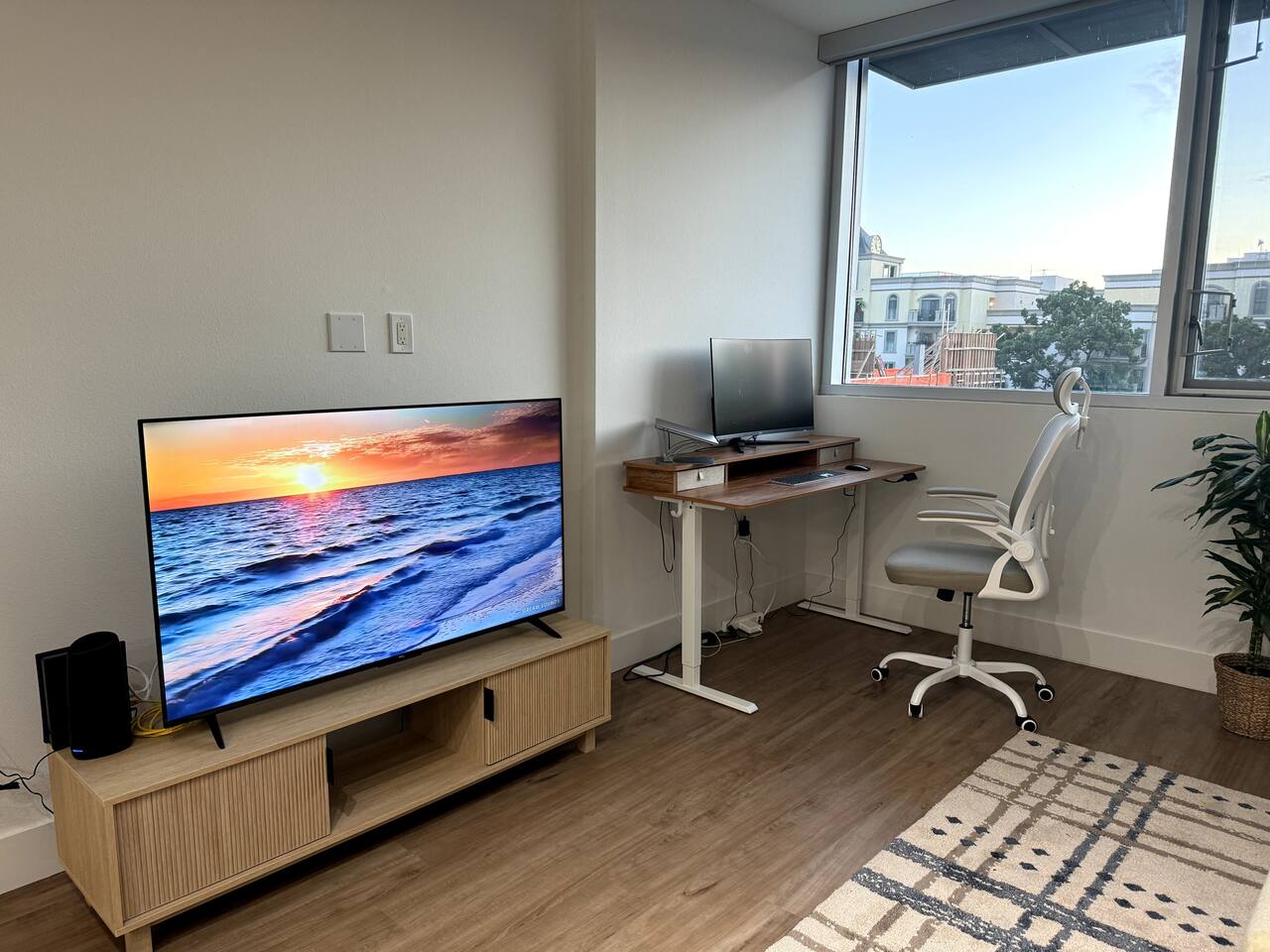 The Space: Unwind in a refined, open-layout living area that flows into a fully equipped kitchen, perfect for any culinary creation you have in mind. With a top-of-the-line Breville espresso machine, juicer, and Vitamix blender, you can start each day with your favorite brews and fresh juices. The bedroom is a peaceful retreat, with a plush bed and ample storage to settle in comfortably. Building Amenities: **Resort-Style Pool: Take a dip or lounge by the pool, ideal for sunny Santa Monica days. **Hot Tub Spa: Relax and rejuvenate in the soothing hot tub, designed to provide a spa-like experience right at home. **State-of-the-Art Gym: Stay active with a fully equipped fitness center at your convenience. **Zen Garden: Find calm in the lushly landscaped zen garden, an urban sanctuary for mindful relaxation. Location: Right in the heart of Santa Monica, youβre steps away from the vibrant culture, shopping, and dining that this iconic neighborhood offers. Whether you're here to explore, work, or simply recharge, this apartment is your perfect base for a memorable stay. Ideal for anyone looking for a modern, upscale retreat in the cityβs most central luxury complex.
