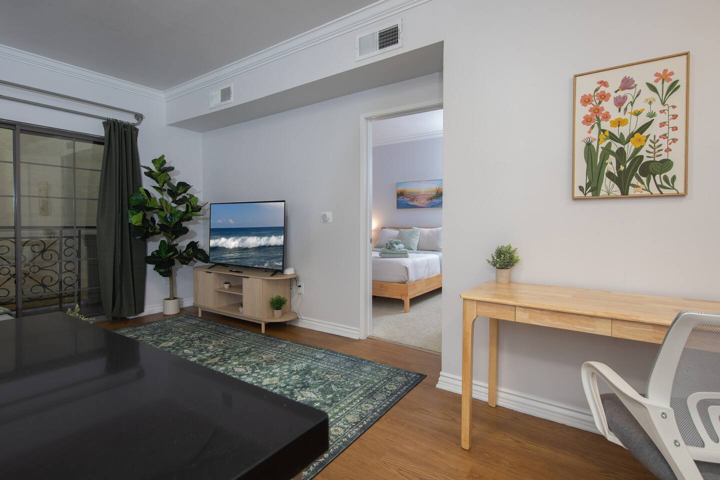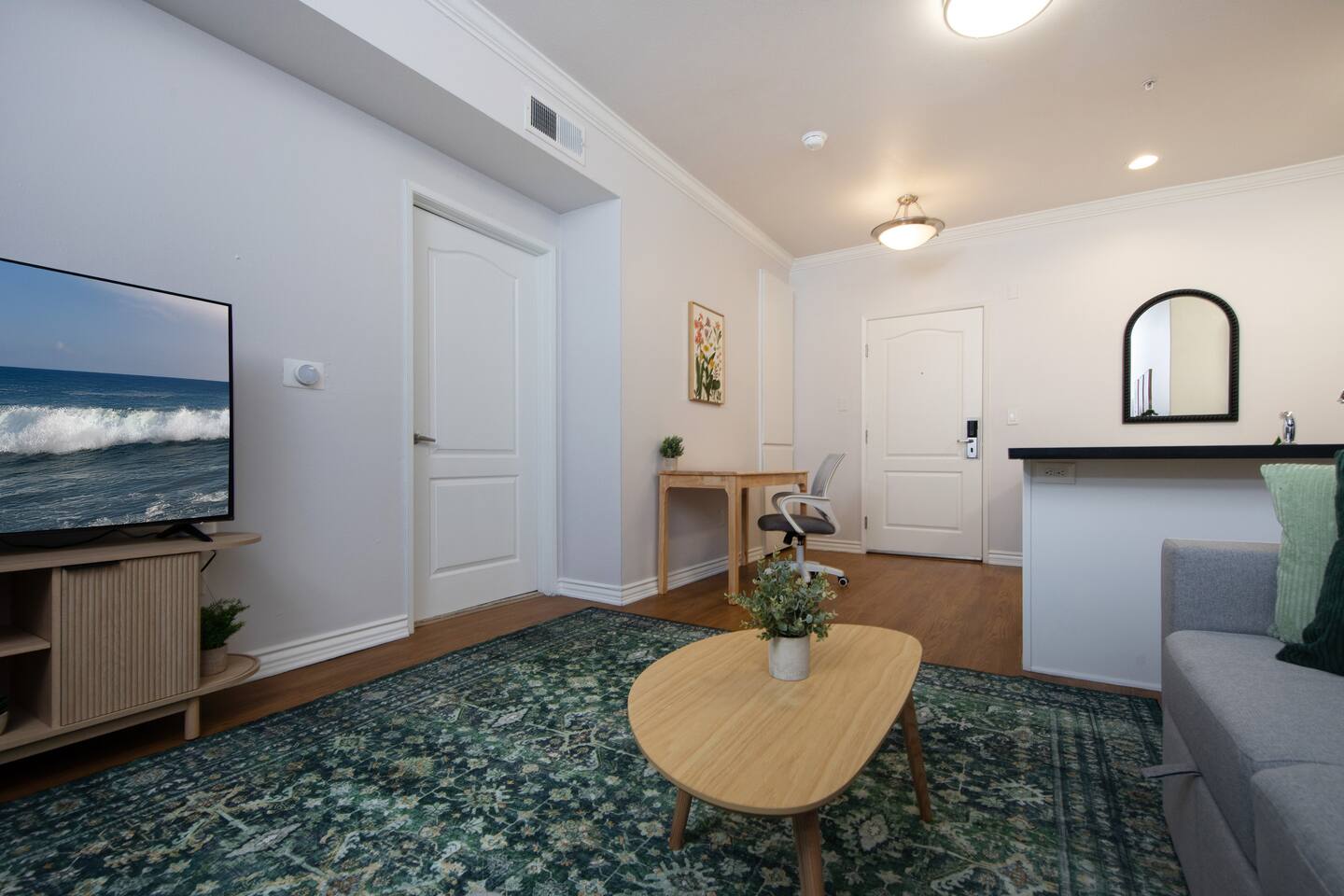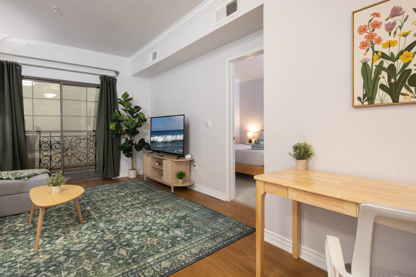 Welcome to your cozy Santa Monica stay! Bright, spacious, and modern one bed/one bath in the heart of downtown Santa Monica. Your home away from home is only a short and beautiful walk to the Pier, Beach, Third Street Promenade, and Santa Monica Place. Whether you're in town for work or vacation, this space is perfect! Enjoy a private balcony, comfy queen bed with hotel-style linens, fast Wi‑Fi, equipped kitchen, full bath, easy self check‑in, and a parking garage for your convenience.