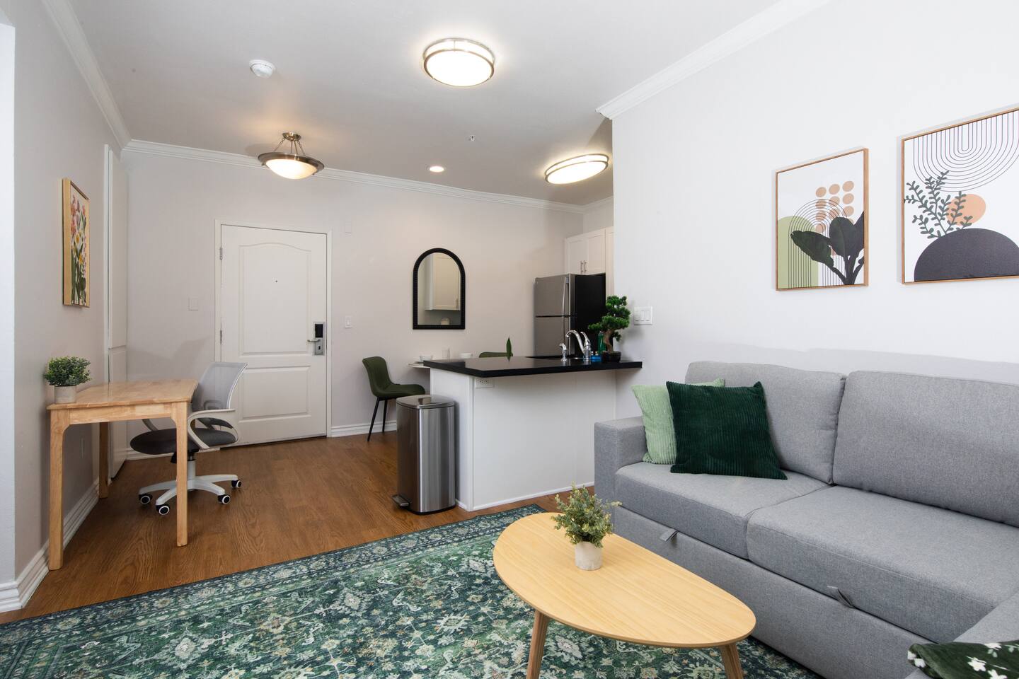 Crafted for your ultimate Santa Monica experience, the unbeatable location lets you walk to shopping, dining, and the ocean in just a few minutes the and the private balcony gives you a perfect spot to relax after a beach day. Space highlights: •One cozy bedroom with a comfortable bed and linens. •Comfortable pull out sofa bed that sleeps two additional guests, perfect for friends or family's traveling together. •Spacious living area that flows onto your balcony, bringing in natural light and fresh coastal air. •Full bathroom with shower/tub combo and essentials for both short and extended stays. Amenities •Fast Wi-Fi and a small workspace, perfect for remote work between beach walks. •Well-equipped kitchen for simple cooking, takeout nights, and morning coffee before heading out. •Access to pool/hot tub amenities in building. •In house washer/dryer for your convenience. •Easy, secure self check-in and access to nearby parking structure. Location: A prime location! You’ll be just a short walk to the Pier, Santa Monica Beach, Third Street Promenade, and Santa Monica Place, so you can shop, dine, and explore from morning to night. You are also around the corner from the metro/bus hub, making it simple to reach the rest of Los Angeles without a car.