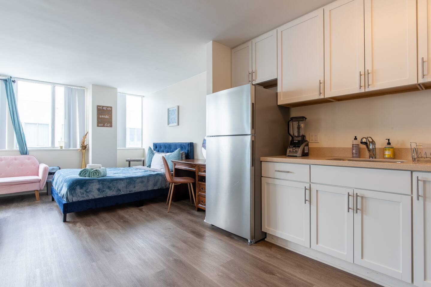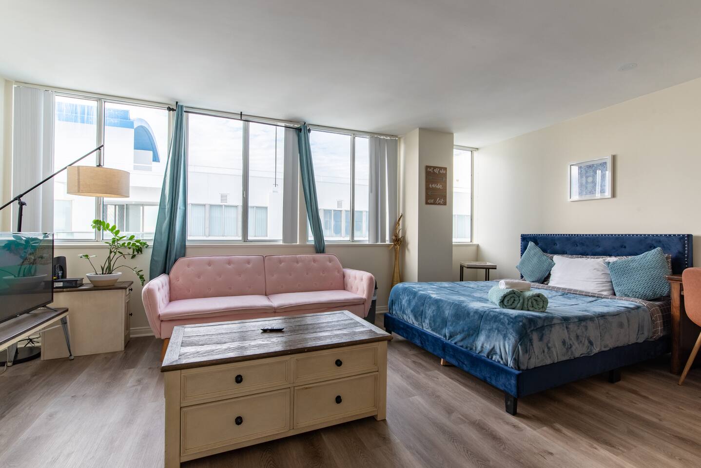 🌟 Welcome to Your Cozy Studio in the Heart of Santa Monica! 🌟 Nestled on vibrant Street, this bright and stylish studio is your perfect home base! 🏡 Thoughtfully designed for comfort and convenience, it has everything you need—whether you're here to work 💼, proximity to the beach, unwind 🛌, or enjoy an extended stay 🌍. Experience the best of Santa Monica right outside your door! 🏖️🍽️ 🚘🅿️ Paid public parking is available in multiple locations nearby.