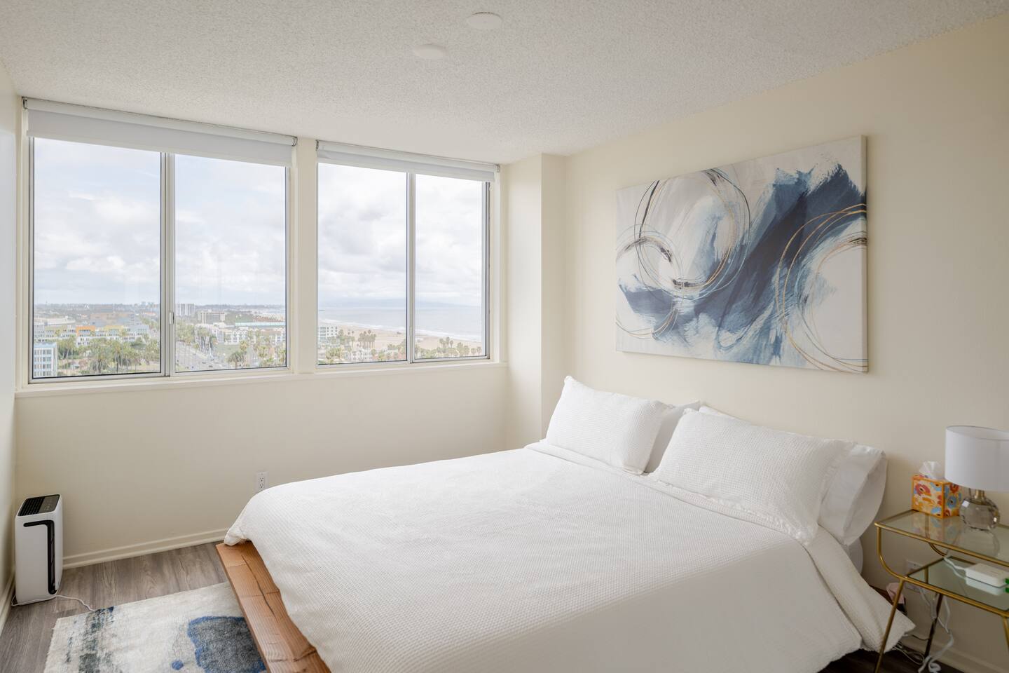 Wake up to breathtaking views of the Santa Monica Pier and Venice, right from the comfort of your king-sized bed. This modern oasis offers the perfect balance of comfort and style, with each space designed to make your stay exceptional. The photos, taken recently, capture the exact beauty and elegance of this luxurious apartment and its unmatched views. Elevate your stay by stocking the kitchen with the freshest ingredients from the renowned Santa Monica Farmers' Market, just a short stroll away. Held every Wednesday and Saturday from 8:00 am to 1:00 pm on Arizona Ave, between 4th and Ocean, this vibrant market offers an exquisite selection of farm-fresh produce, artisanal goods, and gourmet treats—perfect for crafting your own culinary delights in the comfort of your beachfront retreat. Enjoy breathtaking views of the Pacific Ocean and Malibu coastline from your window, high-speed Wi-Fi for remote work or streaming, a smart TV, and the convenience of the building location in the heart of Santa Monica, directly on Ocean Avenue. 🚘🅿️ Paid public parking is available in multiple locations nearby.