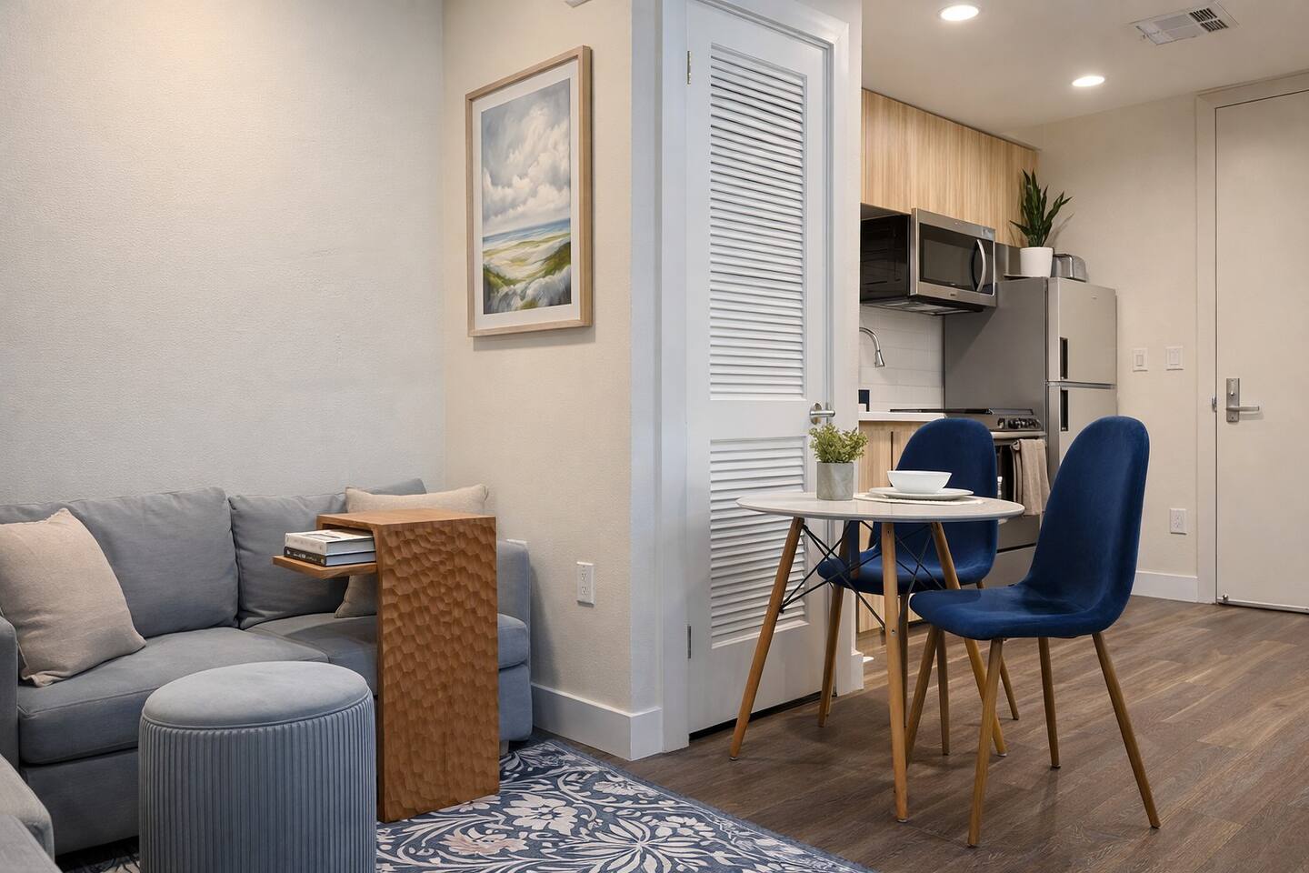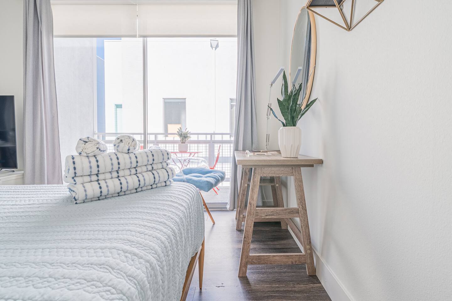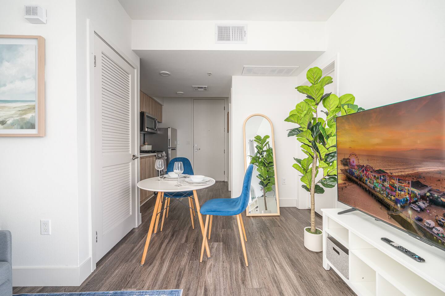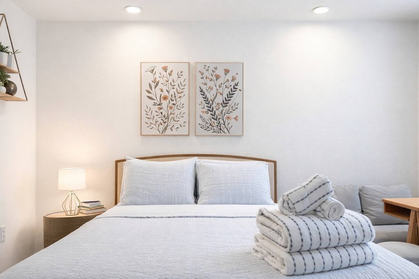 This cozy studio is designed for comfort and convenience, with a warm, inviting feel from the moment you walk in. A thoughtfully arranged living/sleeping and working area opens onto a spacious balcony, giving you extra room to relax with your morning coffee or unwind in the evening. The new kitchen appliances make cooking or heating up meals easy and enjoyable, while the in-unit washer and dryer mean you can pack light and stay as long as you like. It’s a stylish space that feels like your own little Santa Monica retreat. 🌴✨ Guests are welcome to request early check-in starting at 1:00 PM or late check-out until 2:00 PM for a small additional fee, subject to availability. 😊