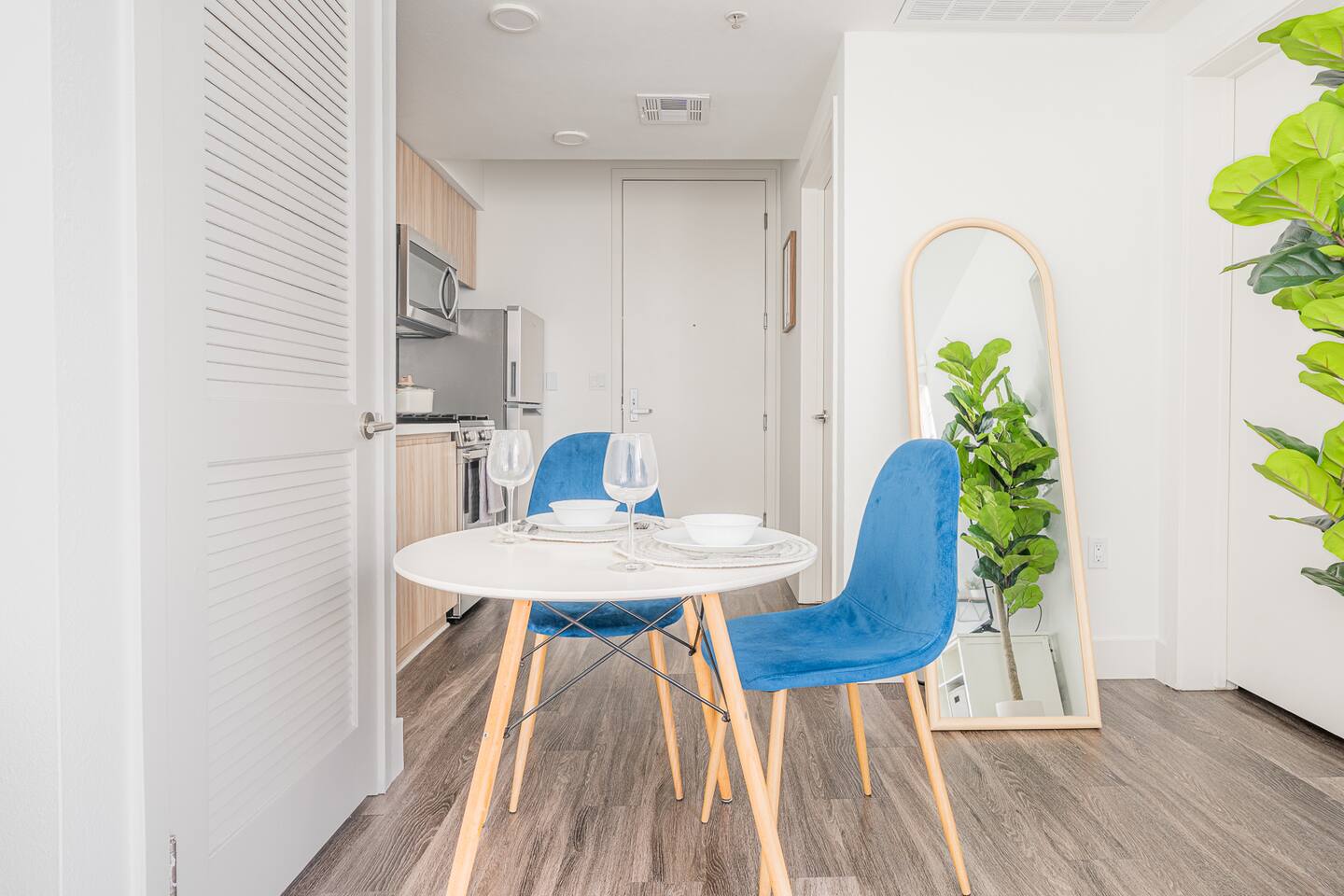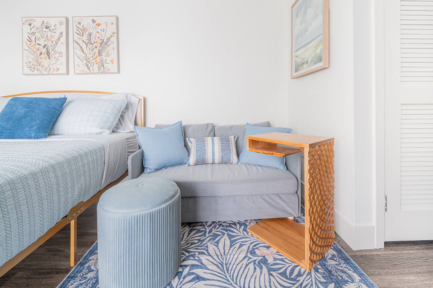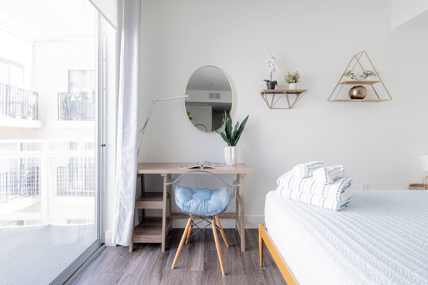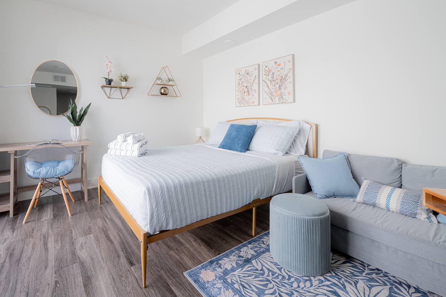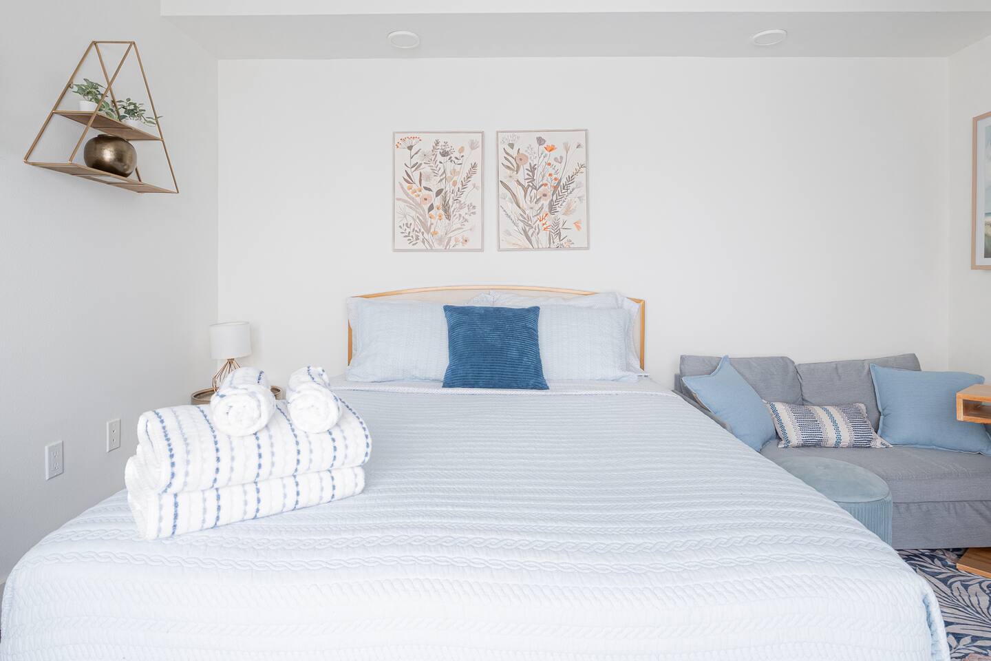 This cozy studio is designed for comfort and convenience, with a warm, inviting feel from the moment you walk in. A thoughtfully arranged living/sleeping and working area opens onto a spacious balcony, giving you extra room to relax with your morning coffee or unwind in the evening. The new kitchen appliances make cooking or heating up meals easy and enjoyable, while the in-unit washer and dryer mean you can pack light and stay as long as you like. It’s a stylish space that feels like your own little Santa Monica retreat. 🌴✨ Guests are welcome to request early check-in starting at 1:00 PM or late check-out until 2:00 PM for a small additional fee, subject to availability. 😊