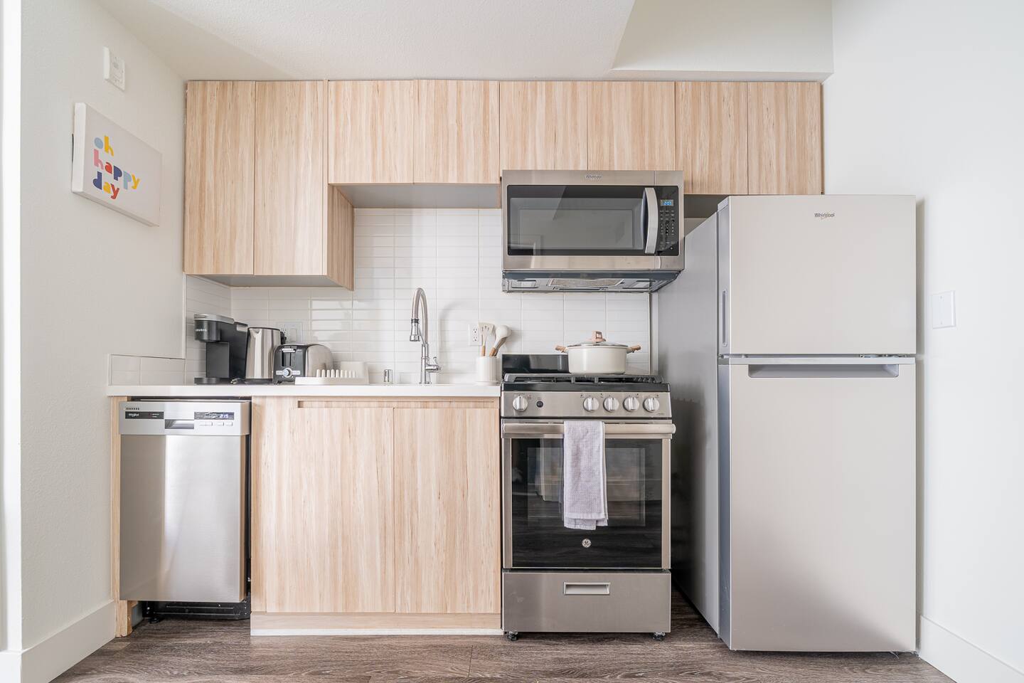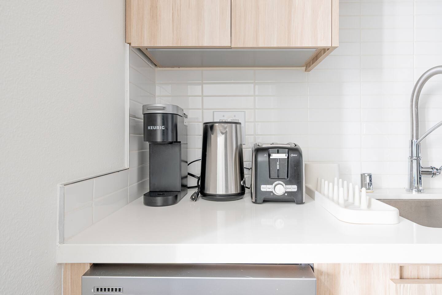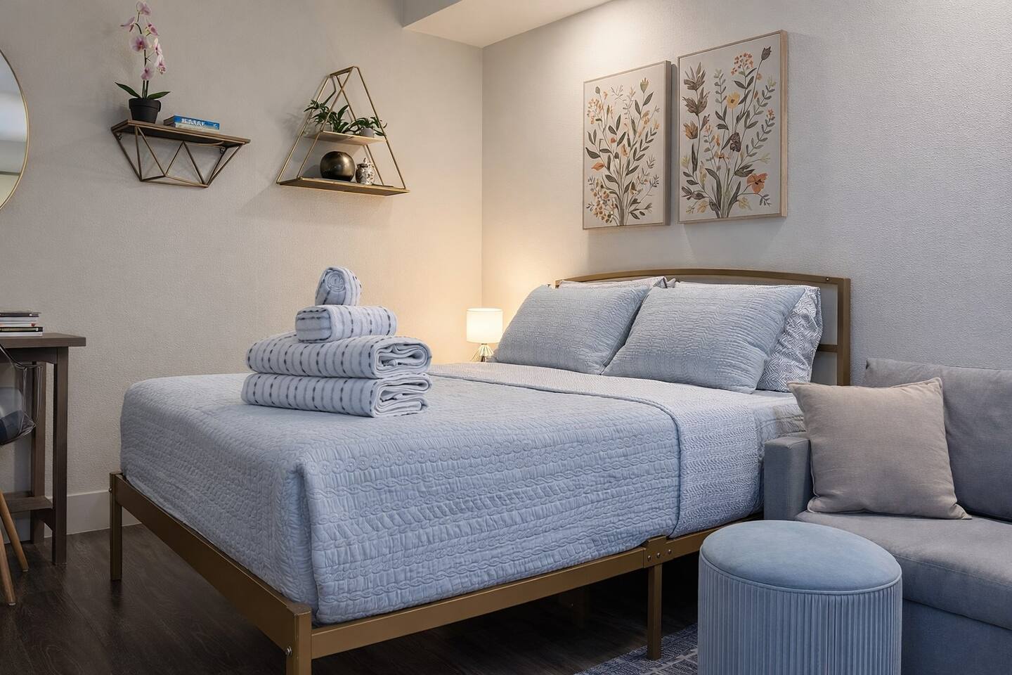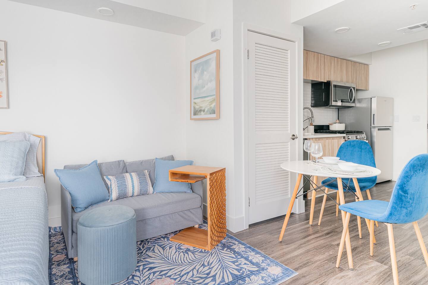 This cozy studio is designed for comfort and convenience, with a warm, inviting feel from the moment you walk in. A thoughtfully arranged living/sleeping and working area opens onto a spacious balcony, giving you extra room to relax with your morning coffee or unwind in the evening. The new kitchen appliances make cooking or heating up meals easy and enjoyable, while the in-unit washer and dryer mean you can pack light and stay as long as you like. It’s a stylish space that feels like your own little Santa Monica retreat. 🌴✨ Guests are welcome to request early check-in starting at 1:00 PM or late check-out until 2:00 PM for a small additional fee, subject to availability. 😊